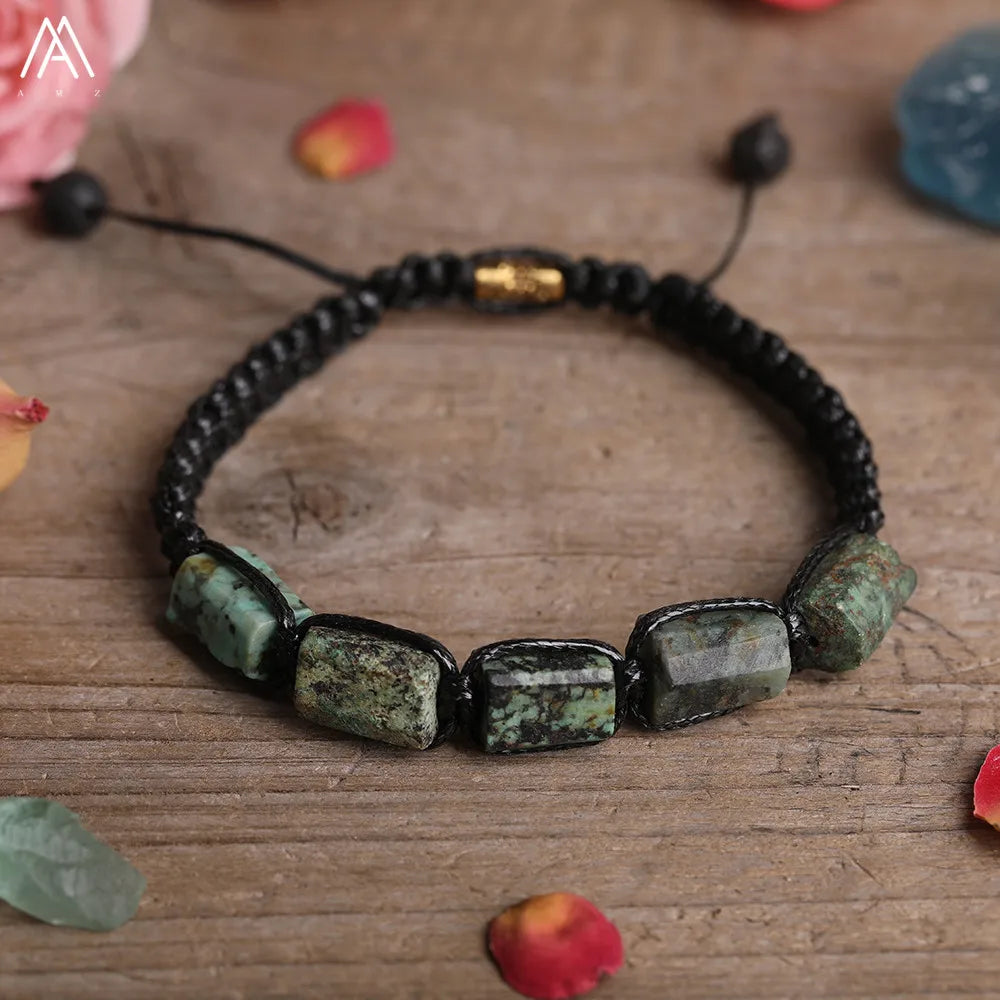 Natural Black Tourmaline Nugget Beads Knotted Handmade Woven Bracelet Women Stone Beads Braid Bracelet Adjustable N0456AMI